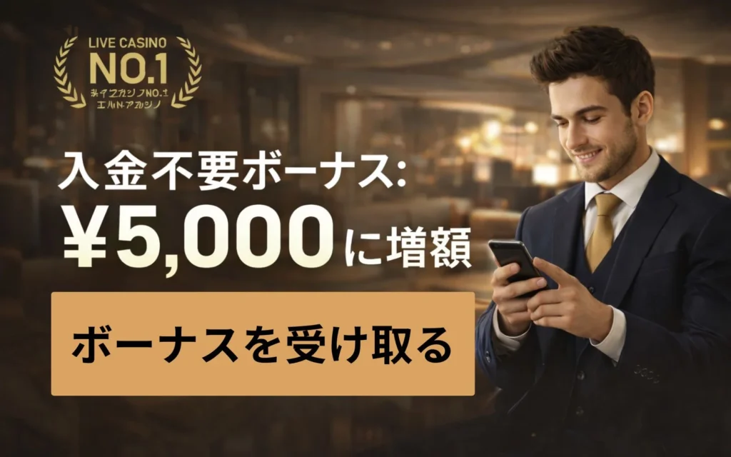 • 入金不要ボーナス:¥3,000 → ¥5,000 に増額